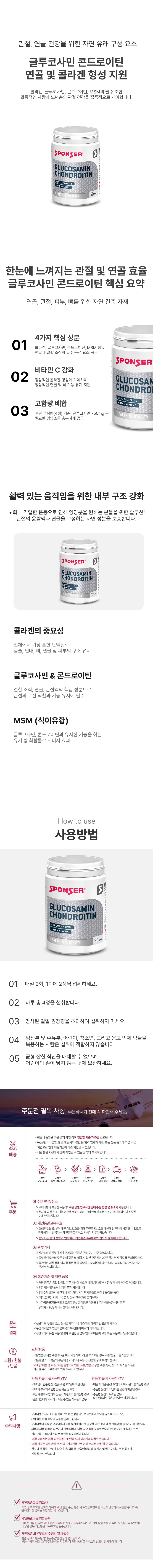 영양성분: 글루코스, 아민, 콘드로이틴, 콜라겐 가수분해물, 비타민E