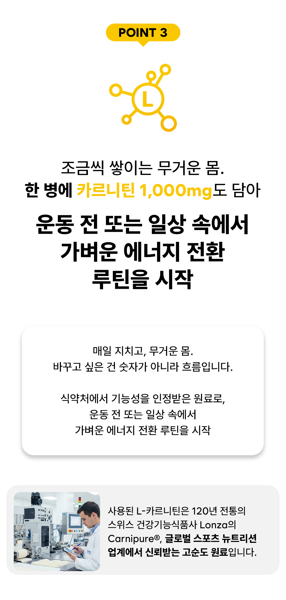 탄산마그네슘, 비타민C, 글루콘산아연, 피리독신염산염, 비타민B2, 비타민B1질산염, 비타민B12, 정제수, 글리세린, L-카르니틴,
